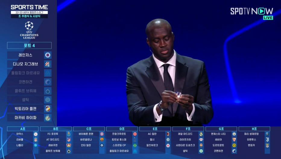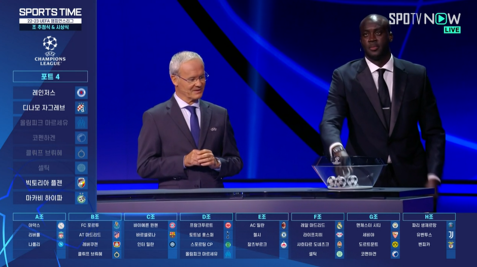 2022/2023 UEFA 챔피언스리그 (챔스) 조추첨이 26일 새벽 1시 스포티비를 통해 중계된 지금, 역대급 죽음의 조가 나와 현장이 난리가 났습니다.