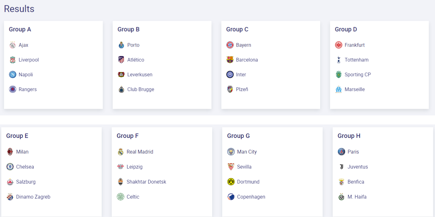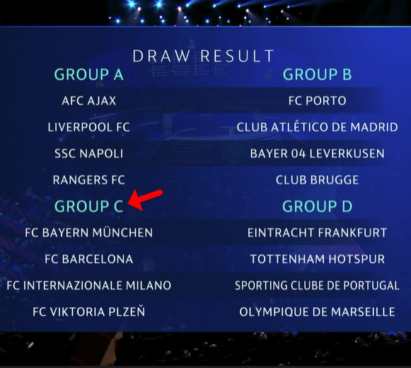 2022/2023 UEFA 챔피언스리그 조별리그 조추첨 최종 결과는 아래와 같습니다.